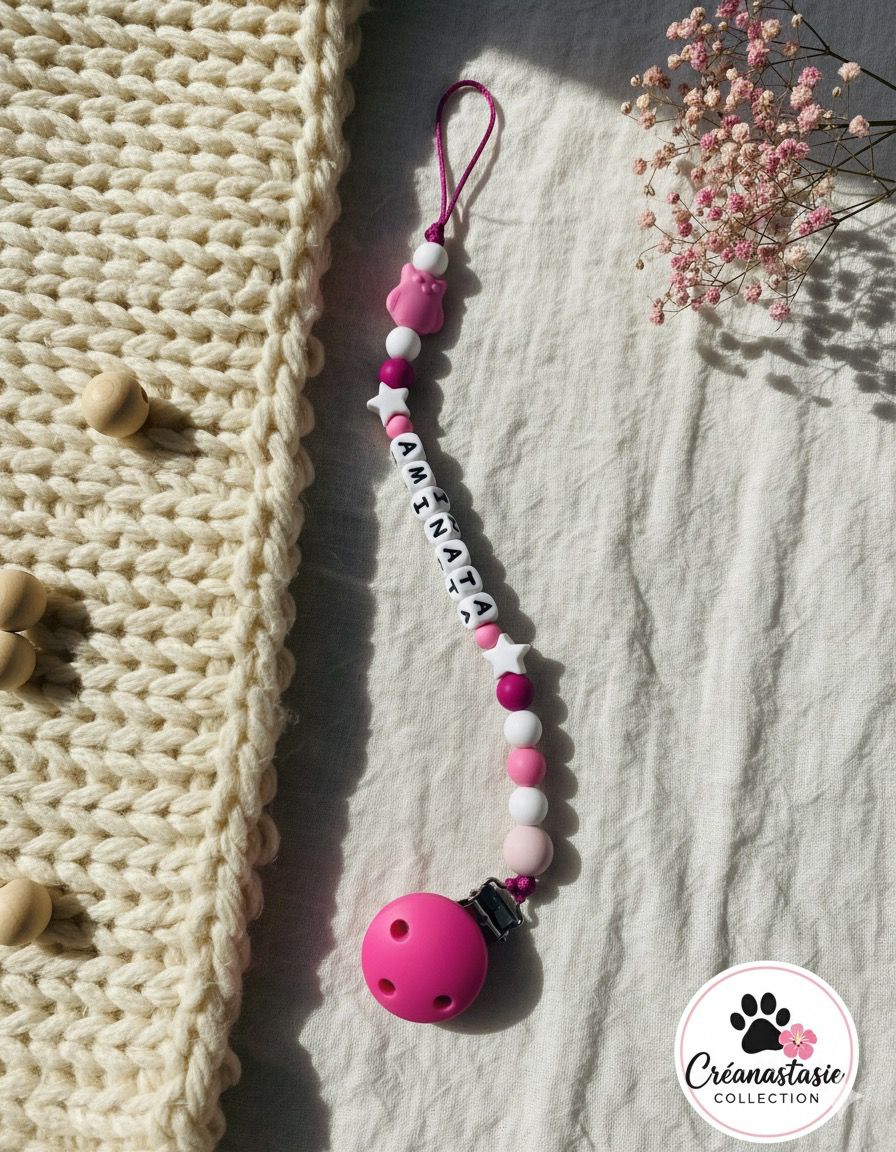 Conçue avec des perles en silicone alimentaire certifié CE, elle garde la tétine à portée de main tout en douceur.