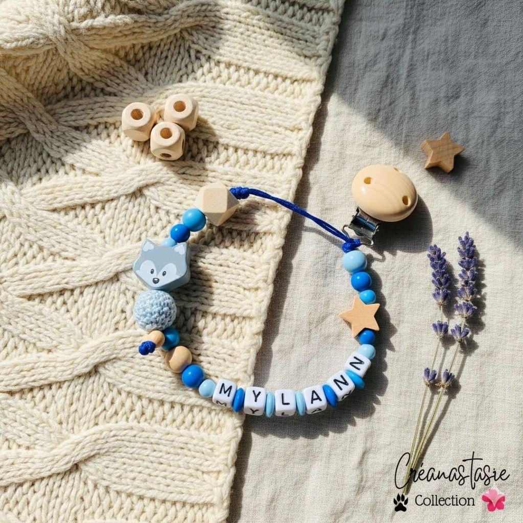 Apportez une touche de naturel et de douceur à la tenue de bébé avec notre attache tétine en bois personnalisée. Fabriquée à partir de bois naturel non traité et de perles en silicone alimentaire (ou coton crochet selon le modèle), elle allie authenticité, sécurité et esthétisme.