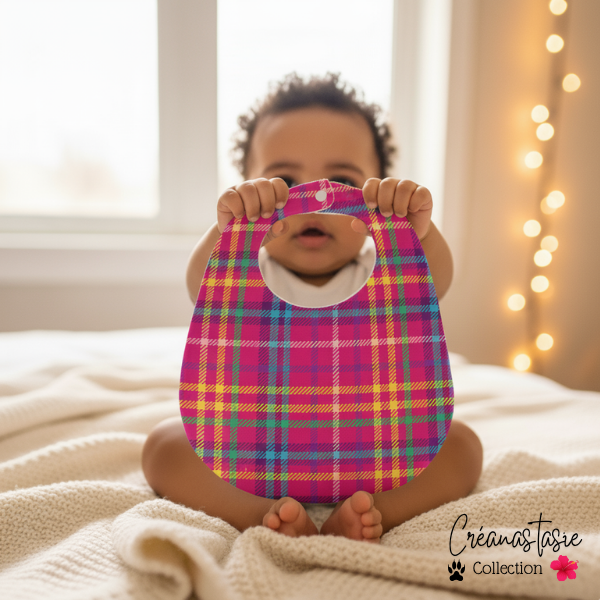 Plongez dans l’univers coloré et chaleureux des Antilles avec ce bavoir en tissu madras aux tons roses éclatants. Un accessoire à la fois chic, culturel et pratique, idéal pour une touche d’originalité dans le trousseau de bébé.